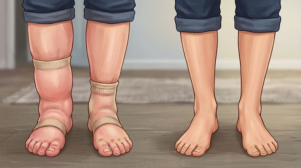 What's happening: Lymph vessels in the lower limbs rely heavily on muscle contraction to push fluid upward. A sedentary day — or a lymph system that's already sluggish — leads to that heavy, tight feeling that builds throughout the day.